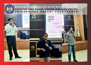 Kegiatan ini diawali dengan sambutan Kepala Departemen Administrasi Publik, Bapak Dwi Harsono,Ph.D dimana dalam sambutannya mengingatkan pentingnya untuk mengikuti acara dengan sebaik-baiknya agar peserta medapatkan banyak manfaat dari acara ini terutama peran generasi muda diyakini akan mampu mendorong terjadinya transformasi pemerintahan ke arah yang lebih baik melalui efektifitas, perbaikan dan pengembangan. Selanjutnya, sambutan oleh Dekan FISHIPOL UNY, Bapak Dr. Supardi, S.Pd., M.Pd., dimana dalam sambutan singkatnya Bapak Dekan menyampaikan bahwa "Generasi muda harus berjiwa muda" kemudian dilanjutkan dengan pembukaan acara oleh Bapak Dekan. Acara ini juga dihadiri oleh dosen pengajar Departemen Administrasi Publik Ibu Dr. Marita Ahdiyana, S.I.P., M.Si. Bapak Pandhu Yuanjaya, S.Sos., MPA. Ibu Maryam Fithriati, dan Ibu Lutfia Septiningrum,S.Si.,M.Stat