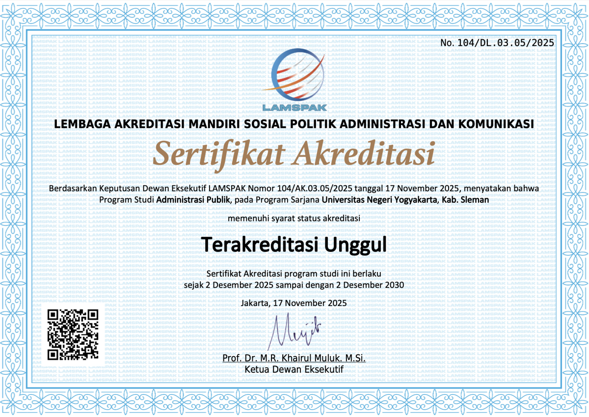 SK Akreditasi Prodi Administrasi Publik S1 Sertifikat Akreditasi (2 Desember 2025 s/d 2 Desember 2030)